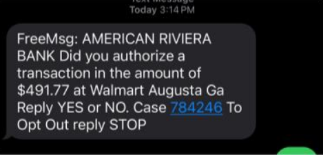 Victims are also targeted through text messages offering “work at home” opportunities. Once the victim responds to the text, the criminal then begins a conversation that leads to an “opportunity to invest” or a job working from home where they are asked to use their bank account to deposit checks and transfer the funds as part of a bookkeeping job, or use the funds to buy gift cards as part of a mystery shopping job.